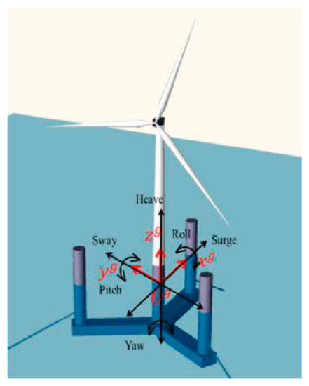 Four parts of the hydrodynamic properties of the floating platform are calculated in this model. (1) The linear hydrostatic restoring force, (2) the added mass and radiation damping from the linear wave radiation including the free-surface memory effects, (3) the incident-wave excitation from the linear diffraction in regular or irregular seas, and (4) the nonlinear viscous drag from the incident-wave kinematics and the platform motions. Therefore, the total force acting on the floating platform is expressed by [25]