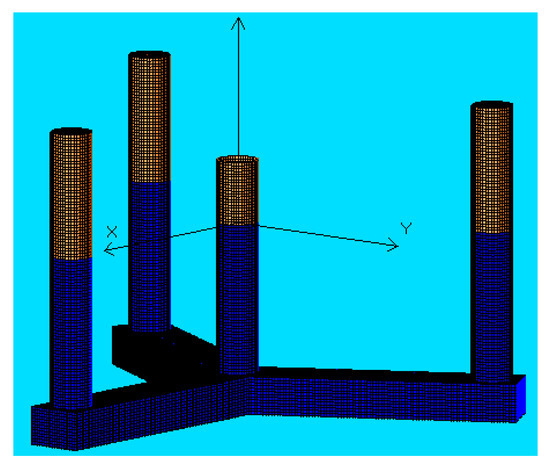 During the analysis, two additional modules were introduced. One is ANSYS-AQWA [40], which was used to calculate the hydrodynamic coefficients of the braceless semi-submersible platform in the frequency domain, including the added mass, potential damping, and first-order wave exciting forces. The panel mesh model of the braceless semi-submersible platform below the SWL is shown in Figure 7. The results of hydrodynamic coefficients were converted to the WAMIT [41] format to perform fully coupled time-domain simulations in FAST. The other is TurbSim [42], which was used to generate the 3D turbulent wind velocity fields which were input into AeroDyn.
