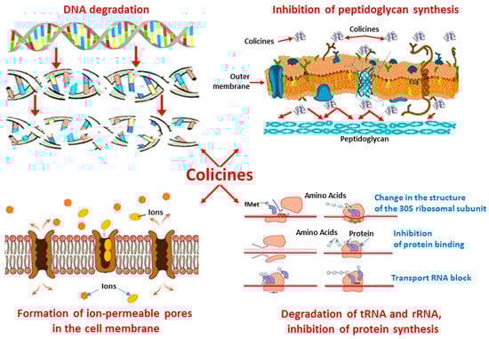 Most of the isolated antimicrobial metabolites are capable of rapidly killing a wide range of microbes. Large-sized antimicrobial proteins (>100 amino acids) are often lytic proteins that bind nutrients [68,70] or destroy specific cell patterns [71,72,73], causing DNA degradation [73,74] and inhibiting intracellular synthesis of peptidoglycan [75,76,77] and specific proteins by disrupting the structure or function of microbial cell membranes [7,54,78,79] (Figure 3).