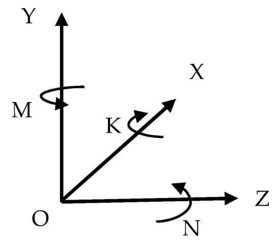 Considering the left-right and front-back symmetry and the motion limit of the manipulator, several coefficients in the second-order expansions are zero, and the remaining others are non-negligible hydrodynamic coefficients, as in Equation (2):