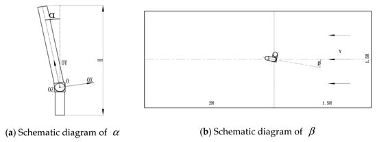 β for the angle of the arm to the flow direction, V for the inlet flow velocity of the domain, and the linear velocity components of the manipulator are as shown in Equation (5):