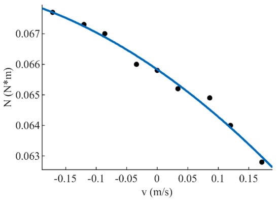 The position derivatives Yv and Nv are the first derivative coefficients of the linear velocity v, so the least squares curve fitting of the vertical force Y and the pitching moment N in viscous hydrodynamics to the linear velocity v is performed, as shown in