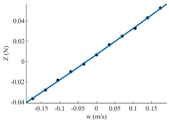 w are the first derivative coefficients of the linear velocity w, so the least squares curve fitting of the viscous hydrodynamic lateral force Z and the yawing moment M to the linear velocity w is performed, as shown in