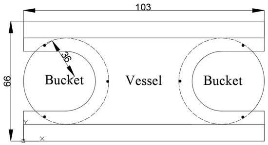The main dimensions of the specialized one-step integrated transportation and installation vessel are shown in Table 1. The complete unit consists of a CBF and an offshore wind turbine. The CBF is a 36 m bucket; the transition section is a curved body; and the wind turbine includes a blade, a nacelle and a tower. In this paper, the turbine with the CBF transported by the one-step integrated transportation and installation vessel is based on a 3 MW wind turbine, and the unit weight is 3000 t.