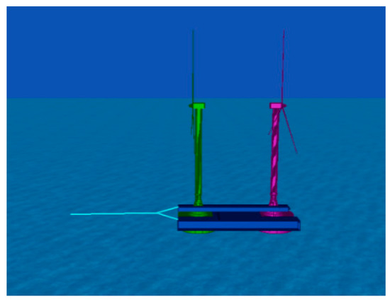 The established wind power vehicle towing prototype and model is shown in Figure 5 and Figure 6. The setting conditions are as follows: Draft 5 m, speed 4 knots, wave height 1.5 m, wave period 5 s, and 0° wave direction.