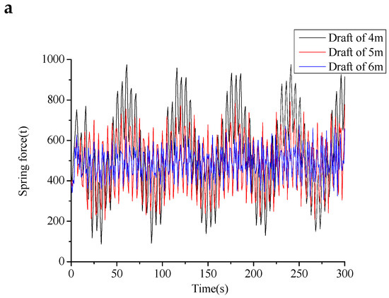 Comparative analyses of the towing cable force and spring force of the model under different draft conditions are shown in Figure 12 and Figure 13.