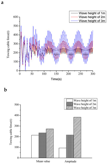 It can be seen from the above analysis that as the wave height increases, the amplitude of the towing cable force, spring force, surging acceleration, and heaving acceleration increase multiply. Therefore, an increase in wave height is not at all conductive to the safety of navigation.