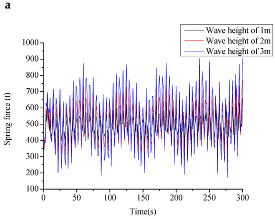 Comparative analyses of the towing cable force and spring force of the model under different wave height conditions are shown in Figure 19, Figure 20, Figure 21, Figure 22, Figure 23 and Figure 24.