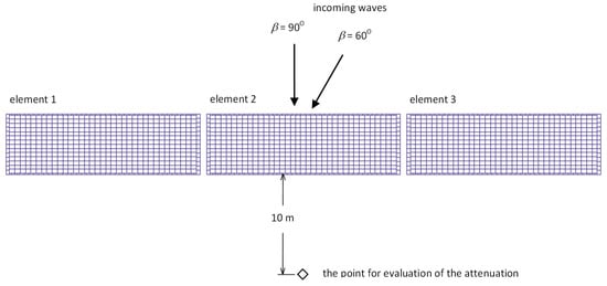 The case studies are conducted with three generic (identical) breakwaters connected in one array. The main properties of one breakwater are presented in Table 1. Irregular waves are assumed with significant wave heights of 1.1 m, 1.2 m and 1.3 m. Two incoming wave directions are examined: 60° and 90° (beam waves). The sea depth is set to 8 m. The Tabain wave spectrum [33], specific for the Adriatic sea, is used along with the JONSWAP spectrum. The Tabain spectrum is based on only one parameter, the significant wave height, while the the JONSWAP spectrum is also based on the peak period (besides the significant wave height).