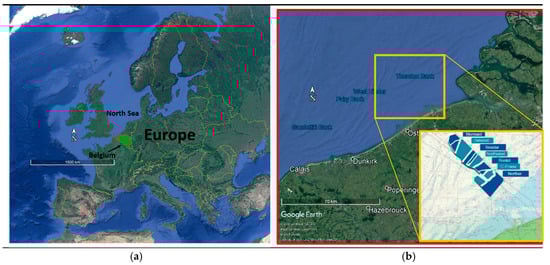 Location of the test setups with a broad view of European map (a) and in the context of Belgian North Sea (b) (source: Map data ©2019 Google).