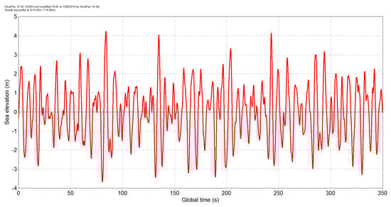 Since the Airy linear theory formulation does not extend above free surface, the kinematic properties of each spectral component are extended above the calm water surface by using Wheeler’s kinematic stretching approach []. As for the calculation of dispersion relation, Fenton approximation is used []. This method yields exact results in shallow water and deep water and produces errors of no more than 0.05% throughout all wavelengths in intermediate water depth [].