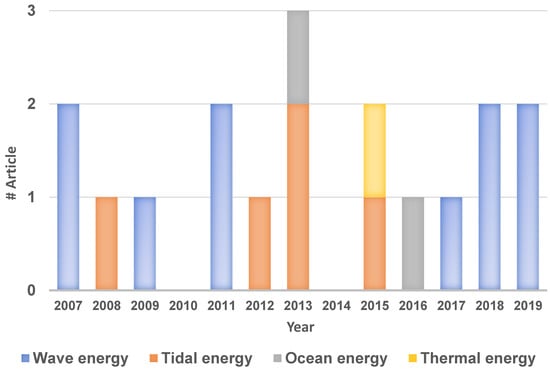 Number of published studies about LCA of ocean energies from 2007 until 2019.