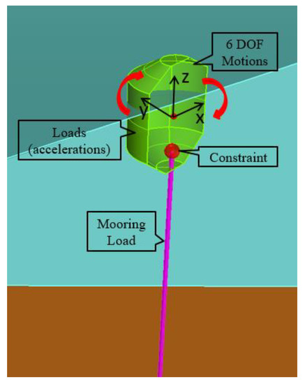 At this stage, the focus is to make sure that the motion predictions from the numerical modeling under different sea states are accurate. Even with the real wave energy converter, for this study (examining the modeling method under different sea states), it is preferable that the power take-off is deactivated. That makes the floating power system similar to the point absorber in essence. Actually, the improvements of SIMDYN and the confidences/benchmarks gained in this study are the foundation for any further study. In the future study, the power take-off forces will be activated in our model to simulate the point absorber in their working mode. That should produce better results for predicting the WEC’s electrical outputs (e.g., voltage, current and power). The refined motion predictions will not only improve the power take-off predictions for the WEC’s working mode but will also improve (more greatly) the load predictions for the point absorber type WEC’s survival mode. The more accurate motion predictions from our improved model can be directly used to determine the local accelerations (will determine the loads and pressures) as well as the mooring line tensions and offsets, which are the most critical quantities for designing WECs. Loads under extreme sea states are the key to overcoming risks and reducing costs of the point absorber type WECs, especially before their practical applications become more extensive.