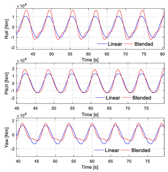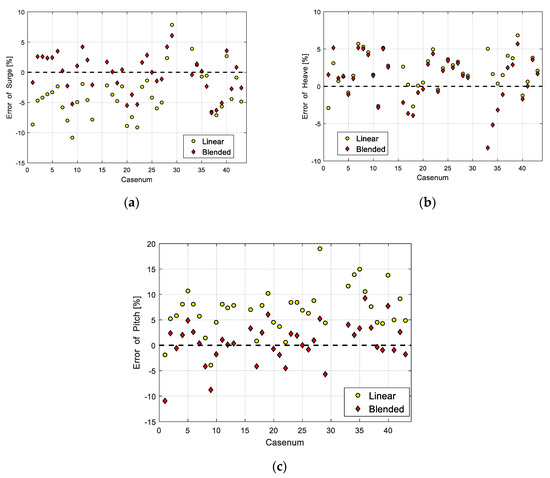 In the case that the large positive errors canceled out the large negative errors (meaning the mean errors did not represent the actual error levels), mean absolute errors are listed in Table 4 to reflect the level of error in another way. The mean absolute errors from the blended model also were shown to be lower than the mean absolute errors from the linear model, except for heave (which was very close).