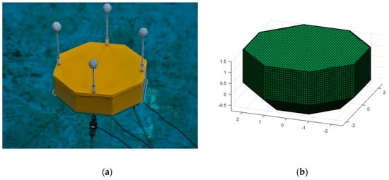 Wave energy is distributed extensively in coastal areas and holds huge potential for wider utilization [1]. Many wave energy structures (WESs) were designed to convert wave energy to electricity [2,3]. While some WESs are fixed onto the shore or the seabed, many are floating or submerged structures (see Figure 1). It is worth noting that WESs may be any structure subjected to wave energy. In this paper, the floating power system (FPS) used in the model test correlations is a necessary unit in the wave energy conversion system, but the FPS itself is not a wave energy converter (WEC). That is the reason why we used the more general term “WESs” to refer to it.