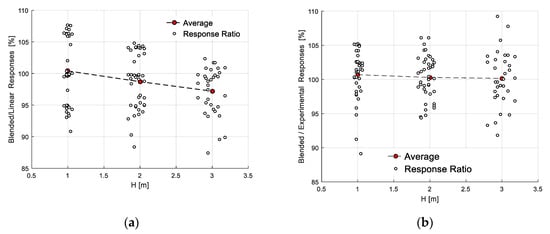 Response ratio: (a) blended/linear; (b) blended/experimental.