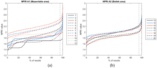 From all the NPRI values obtained, the maximum could be chosen as a reference value. Since there might be specific situations where the maximum NPRI is extreme due to a certain specific situation, this might lead to an overestimation of the risk in the area. Hence, in this research, we define the final NPRI value by ordering the results from each area from low to high and choosing the 95 percentile higher NPRI value. These results can be mapped for each port area to provide decision makers with a clear picture of the areas with higher risks, as done in previous research by Wang et al. (2014) [25], and to support their assessment.