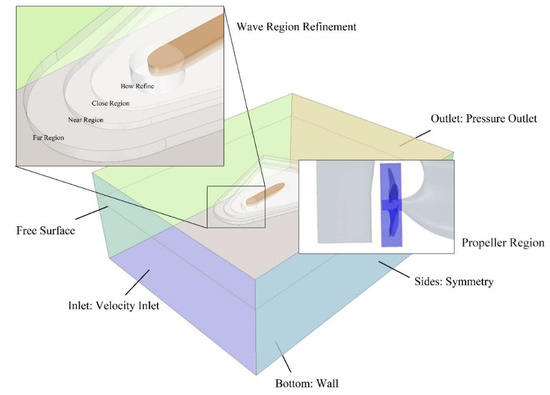 19]. These approaches are certainly time-consuming due to the large discrepancy between propeller rotation period and ship’s traveling wave period. The later ones introduced actuator disk method or body force method to simulate the effect of propeller rotation, many attempts such as momentum theory [