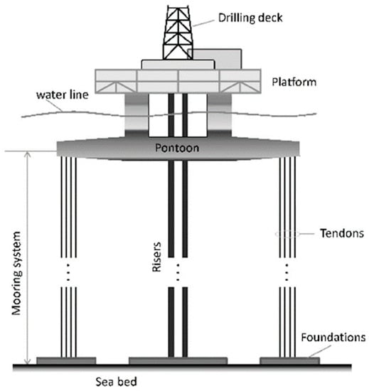 Schematic diagram of the tension leg platform (TLP) [29].
