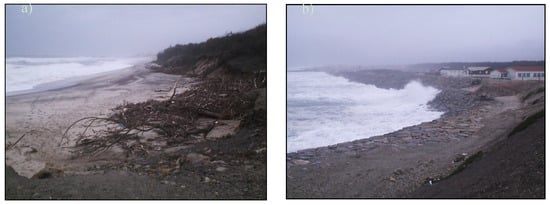 Coastal erosion is an important problem around the world and requires frequent discussion on mitigation measures and coastal zones management policies [1,2]. In fact, several countries in the world lack an integrated coastal zone management policy capable of assessing the societal goals for a given coastal area [3,4,5,6,7,8]. The typical diagnosis, small-scale, unique and objective, over the coastal system does not produce the best results in the long-term and it should no longer exist [5]. Long-term strategic approaches are needed in coastal governance, including adaptation measures built upon monitoring, multi-criteria and cost–benefit analysis, as a way to deal with opposite interests and challenges within the limits set by the natural dynamics. Only by understanding the ongoing processes behind the natural evolution of such complex and sensitive systems, the vulnerabilities, the risks, the costs, the benefits and impacts of nature–human interactions, managers will be in position to establish a fair decision-making process and reduce the negative impacts of coastal change [4,7]. However, there are no sequential and integrated approaches to guide engineers and managers on the process to develop an adequate management and planning of the coastal zones, capable to tackle coastal erosion and climate change effects. Thus, as a first step to support numerical modeling approaches, providing data and allowing calibration and validation, important monitoring programs should be established. Coastal observatories are recognized as appropriate networks to fight against coastal risks [9]. These authors refer that generally, regional coastal observatories aim to rationalize and mutualize expensively acquired and shared data in regards to coastal risks, in order to respond to public and private requirements for better management of coastal areas. Monitoring programs are considered to improve the context for strengthening the numerical tools that counteract coastal risks.