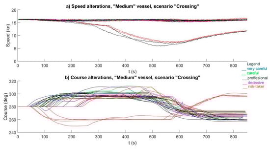 Alterations of ship speed and course. Medium ship, ‘Crossing’.