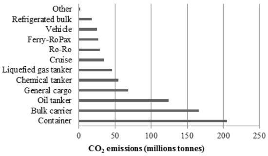 Global shipping has a great impact on global carbon emissions as it accounts for approximately 3% of the global CO2 emissions [1]. The shipping industry is responsible for almost 11% of the CO2 emissions from the transportation sector [2], which, in turn, contributed to around 29% of the global CO2 emissions in 2016 [3]. It is forecasted that the CO2 emissions from international shipping will experience a significant rise between 50% to 250% by 2050 [4], and it might reach 17% of the global emissions if no measures are taken [5]. A reduction of CO2 emissions around 90% is required from 2010 to 2050 [6] in order for the shipping industry to contribute to the global target of keeping the temperature increase below 2 °C. The International Maritime Organisation (IMO) Marine Environmental Protection Committee (MEPC), acknowledging the great contribution of the shipping sector to the global CO2 emissions, set a target to reduce the CO2 emissions from the shipping sector by 50% until 2050 [7].