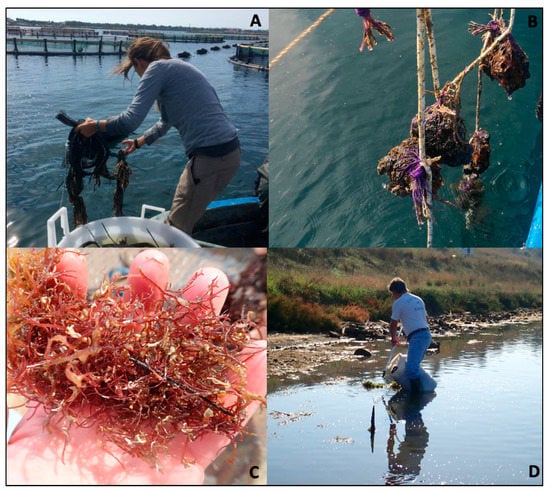 - Bermejo, R.; Cara, C.L.; Macías, M.; Sánchez-García, J.; Hernández, I. Growth rates of Gracilariopsis longissima, Gracilaria bursa-pastoris and Chondracanthus teedei (Rhodophyta) cultured in ropes: Implication for N biomitigation in Cadiz Bay (Southern Spain). J. Appl. Phycol. 2020, 32, 1–13. [Google Scholar] [CrossRef]