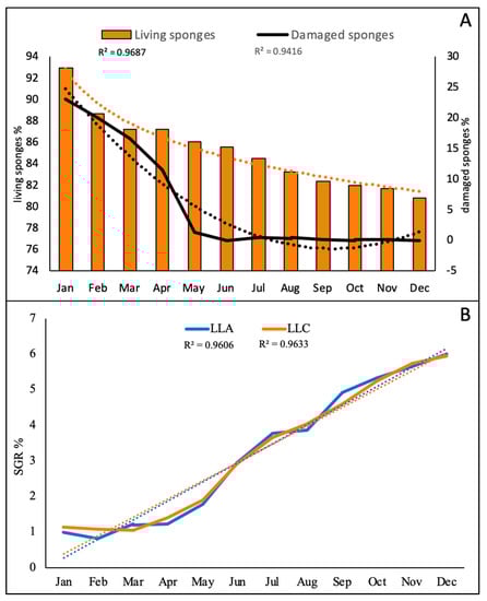 - Corriero, G.; Longo, C.; Mercurio, M.; Marzano, C.N.; Lembo, G.; Spedicato, M.T. Rearing performance of Spongia officinalis on suspended ropes off the Southern Italian Coast (Central Mediterranean Sea). Aquaculture 2004, 238, 195–205. [Google Scholar]