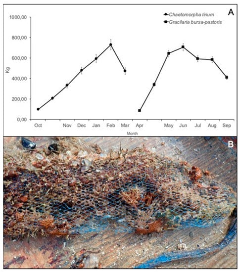 - Stabili, L.; Cecere, E.; Licciano, M.; Petrocelli, A.; Sicuro, B.; Giangrande, A. Integrated Multitrophic Aquaculture By-Products with Added Value: The Polychaete Sabella spallanzanii and the Seaweed Chaetomorpha linum as Potential Dietary Ingredients. Mar. Drugs 2019, 17, 677. [Google Scholar] [CrossRef]