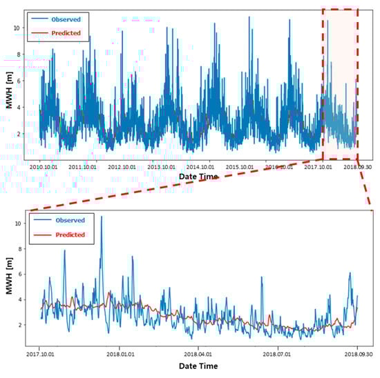 Results of predicting mean wave height (MWH) using conventional LSTM.