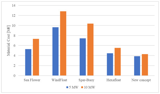 Then, the tool has been implemented to perform an optimization with Matlab genetic algorithm: the purpose is to identify the best concept in terms of weight and material cost among all the platforms, which nevertheless satisfies the constraints imposed by Standards. Once the main material costs have been estimates from literature, for each concept has been defined a material cost function, that is the fitness function to minimize. From the results obtained, it has been possible to identify two most promising concepts—the Spar-buoy and Hexafloat—with whom a preliminary project has been defined for a wind farm near the island of Pantelleria. Finally, a sensitivity analysis identifies possible cost reductions due to an increase in capacity factor, a decrease in Weighted Average Capital Cost (WACC), or by varying the number of turbines and rating.
