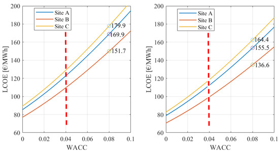 Influence of Capacity Factor for sites A, B, and C for both concepts.