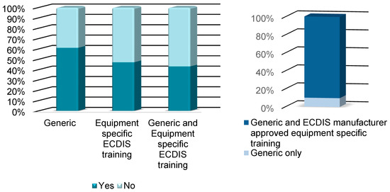 During the transitional period, it has been noted that the generic ECDIS certification from the participants in the ECDIS EHO survey has increased from 61% to 100% in the HMI survey. The type-specific (familiarization) ECDIS training certification has risen from 47% in the ECDIS EHO survey to 90% in the HMI survey, as shown in Figure 6.