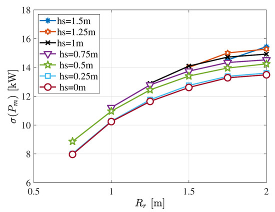 Standard deviation of the monthly average output power versus the variation of and (, m and the 30type turbines).