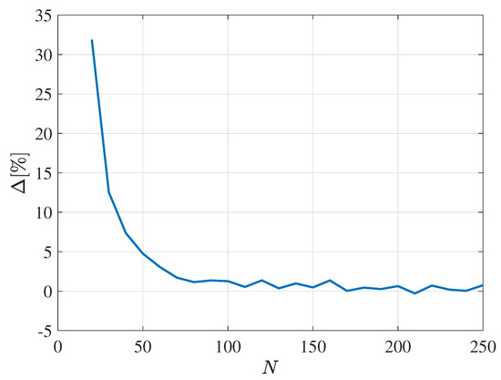 The curve associated to the dynamic strategy does not allow to choose over the number of turbines to be made by means of a search for a peak, but it requires to identify the point where a further increment in the number of turbines does not cause an adequate output power. To identify such a point the percentage increase in the yearly average output power () versus the variation of N has been evaluated and it is shown in Figure 18.