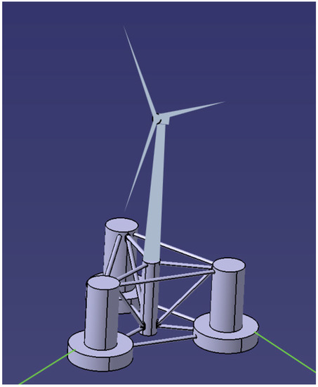 - Jonkman, J.M. Dynamics Modeling and Loads Analysis of an Offshore Floating Wind Turbine; NREL/TP-500-41958; National Renewable Energy Lab.: Golden, CO, USA, 2007. [Google Scholar]