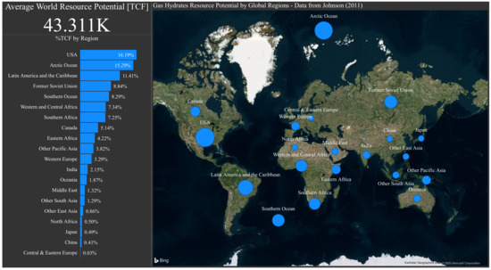 Methane hydrates resource potential by global regions [TCF]—Data from Johnson (2011) [1].