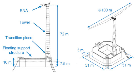 | Floating support structure’s dimension (including skirt) | 51 m × 51 m ×10 m |
