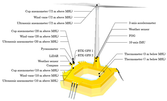 - Imakita, A. 2 MW Floating Offshore Wind Turbine Facility Fukushima Mirai. Bull. Jpn. Soc. Nav. Archit. Ocean Eng. 2018, 81, 34–37. (In Japanese) [Google Scholar]