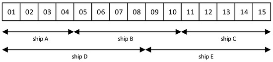 The berths assignment takes place in such a way that each ship, depending on the estimated time of arrival at the port, is assigned a place on the quay, or such that an appropriate number of berth positions join it (Figure 2). To do that, it is necessary to know the ship’s length, the estimated time of arrival (ETA), the duration of the cargo handling operations, and the estimated time of departure (ETD) of the ship.