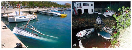 - “the damages generated by the 2003 Western Mediterranean tsunami in the Palma harbour concentrated in the northern basin where several pleasure and sailing boats sank between Sant Magí dock and the Royal Yacht Club. The shallow water depth in this part of the harbour eased the sinking of the boats, as they were quickly moved up and down by the oscillations easily hitting the bottom and breaking” [31];