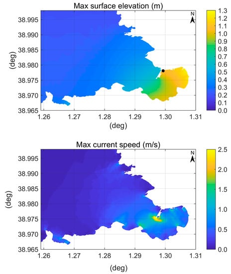 - Vela, J.; Pérez, B.; González, M.; Otero, L.; Olabarrieta, M.; Canals, M.; Casamor, J.L. Tsunami resonance in the Palma de Majorca bay and harbour induced by the 2003 Boumerdes-Zemmouri Algerian earthquake (Western Mediterranean). In Proceedings of the 32nd International Conference on Coastal Engineering 2010, Shanghai, China, 30 June–5 July 2010; McKee Smith, J., Lynett, P., Eds.; ASCE/COPRI Coastal Engineering Research Council: Reston, VA, USA, 2011. currents.7. [Google Scholar] [CrossRef]