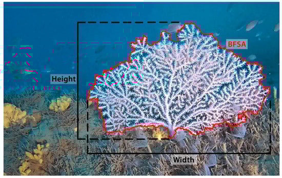 Colony of Eunicella verrucosa with indication of height, width, and branch fan surface area (BFSA).