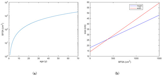 The same study reported the following linear relations between BFSA and height (h) and width (w) (Figure 2b), that have been considered in this study: