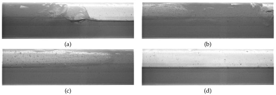 - Matsubara, H.; Naito, K. Effect of liquid viscosity on flow patterns of gas-liquid two-phase flow in a horizontal pipe. Int. J. Multiph. Flow 2011, 1, 1277–1281. [Google Scholar]