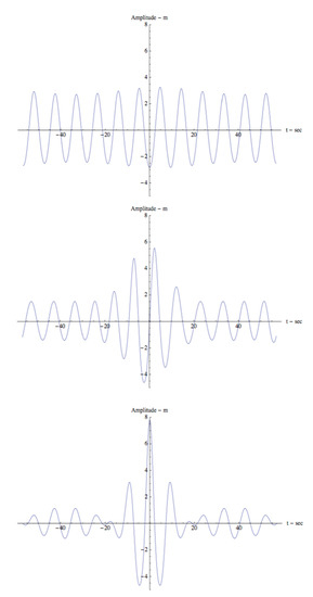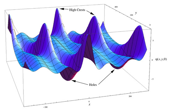 We are very much used to applying a linear superposition law for describing many features of ocean waves. The idea of a “linear model” occurred during the 1940s and was first proposed by Barber et al. [35], and Longuet-Higgins and Barber [36] (see also Longuet-Higgins [37,38]), based on the seminal work of Paley and Weiner [39] on almost periodic Fourier series (see Appendix A for further discussion). The fundamental idea is the following. Ocean waves are described in two space dimensions and time by a complex Fourier series of the form: