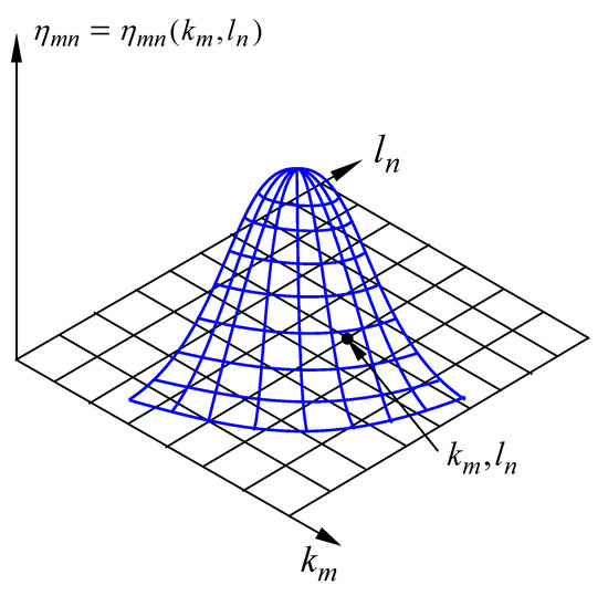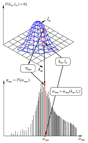 We have here used the depth-dependent linear dispersion relation (3), where is the acceleration of gravity and is the water depth. Below we will modify (3) by: (a) increasing it to nonlinear order and (b) introducing the effects of the modulational instability (see Benjamin and Feir [40]). An important property of the components is that they are incommensurable even if the wavenumbers are chosen to be commensurable, a key feature which we exploit in this paper. In any infinitesimal element of the wavenumber plane , the Fourier amplitudes obey the relation: