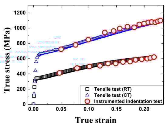We can use the constitutive equation to evaluate the tensile strength from the indentation test. Thus, tensile properties such as the yield strength, tensile strength, and flow curve can be evaluated from these four stages using an instrumented indentation test [,].