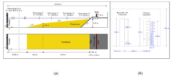 Urban areas situated along low elevation coastal zones need to be protected against wave overtopping and flooding during storm conditions. Moreover, many existing sea dikes protecting such coastal urban areas need to be adapted to be prepared for the effects of sea level rise, which is one of the most challenging problems currently facing coastal communities around the world. A hybrid soft-hard coastal defence system is a promising solution in this context [1]. Such a coastal defence system consists of a soft mildly-sloped—usually nourished—beach that acts as a shallow foreshore to a hard steep-sloped sea dike. In many cases, structures on top of the sea dike (e.g., storm walls and buildings fronted by a promenade) are still in danger of being loaded by overtopping storm waves. In the design of these structures, such wave loading needs to be considered. However, this is a challenging task, because along the cross section of a hybrid beach–dike coastal defence system, storm waves are forced to undergo many transformation processes before they reach the structures on the dike. These hydrodynamic processes include shoaling, wave dissipation by breaking (turbulent bore formation) and bottom friction, energy transfer from the sea/swell or short waves (hereafter SW) to their super- and subharmonics (or long waves: hereafter LW) by nonlinear wave–wave interactions, reflection, wave run-up and overtopping on the dike, bore impact on a wall or building, and finally reflection back towards the sea interacting with incoming bores on the promenade.