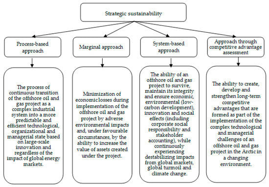Classification of approaches to the definition of “strategic sustainability” of the offshore Arctic oil and gas project. Source: authors self-elaboration.
